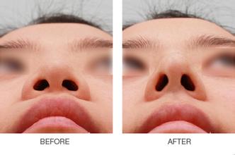 2、垫高鼻尖整形之鼻翼基底楔形切除法隆鼻尖:如鼻尖形态较好,仅是略低时,隆鼻尖在双侧鼻翼基底切除一块楔形的全厚组织,使鼻孔内收、穹窿部上突,即抬高了鼻尖。