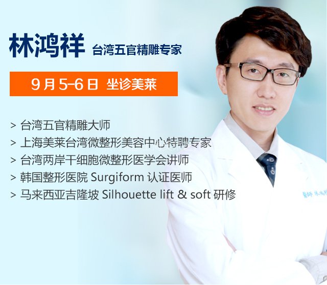 经历: 林鸿祥博士,台湾国防医学大学医学系毕业,从事微整形及抗衰事业多年,以其独特的微整形设计理念、五官精雕技艺技术,尤其擅长面部综合除皱,打造出无数成功的美丽蜕变案例。