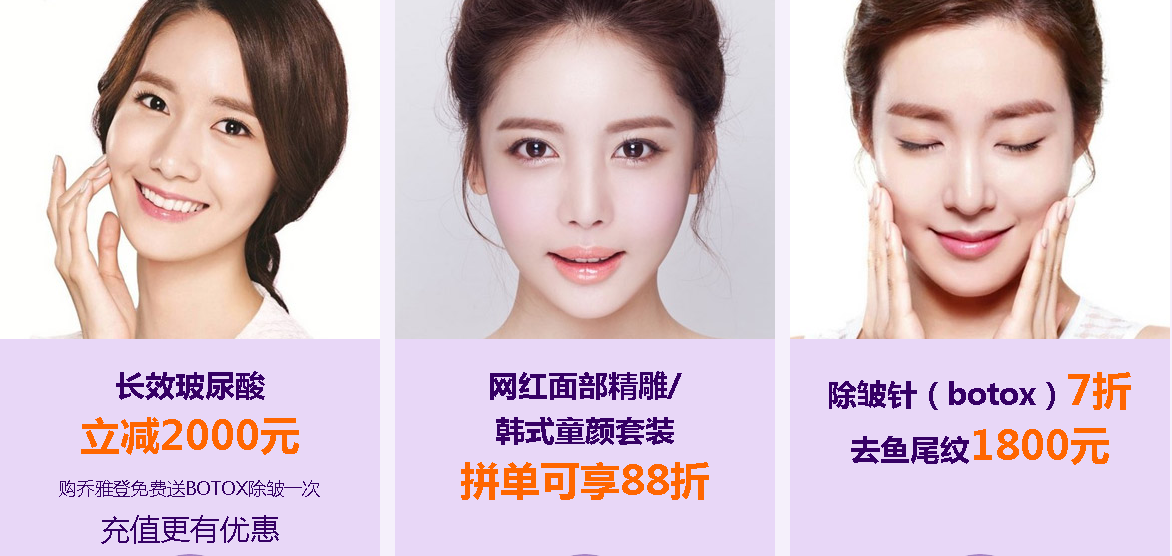 1、有效玻尿酸立减2000元、购乔雅登免费送除皱快速、充值更有优惠