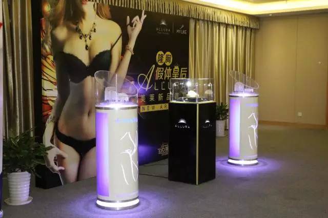 讲座现场一侧有展示上海美莱的隆胸新品——ALLURA傲诺拉隆胸!