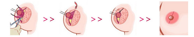 双侧真皮乳腺组织瓣交叉转移术:主要适用于保守疗法无效的轻度凹陷及中度乳头凹陷。